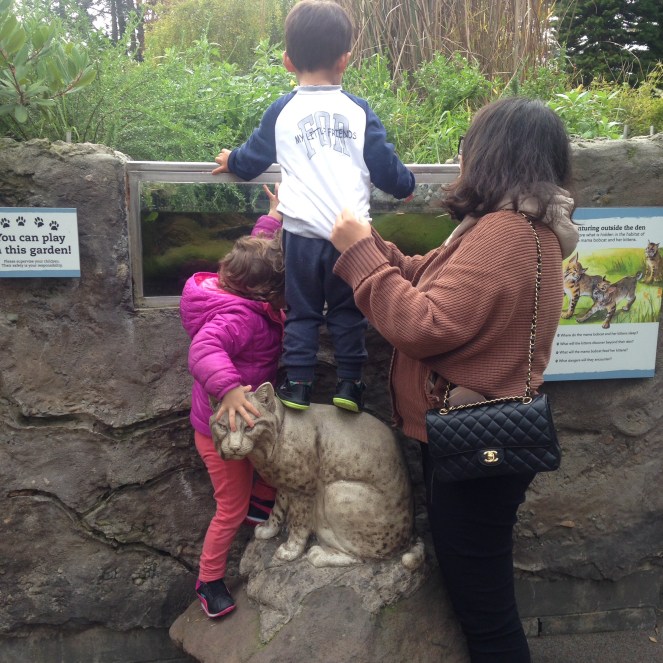 Cosa c.’era? un pavone, qualche anatra, dei serpenti, i conigli, due tartarughe….per poi passare anche alla lince, ai pipistrelli e ai procioni. La lince se ne stava nascosta tra la vegetazione e ci osservava con i suoi grandi occhi verdi… bellissima! I pipistrelli erano in una caverna dove Francesco continuava ad entrare e uscire facendo cucu! I procioni venivano continuamente disturbati dai bambini che si spalmavano sul vetro della loro gabbia/area/spazio vitale.
