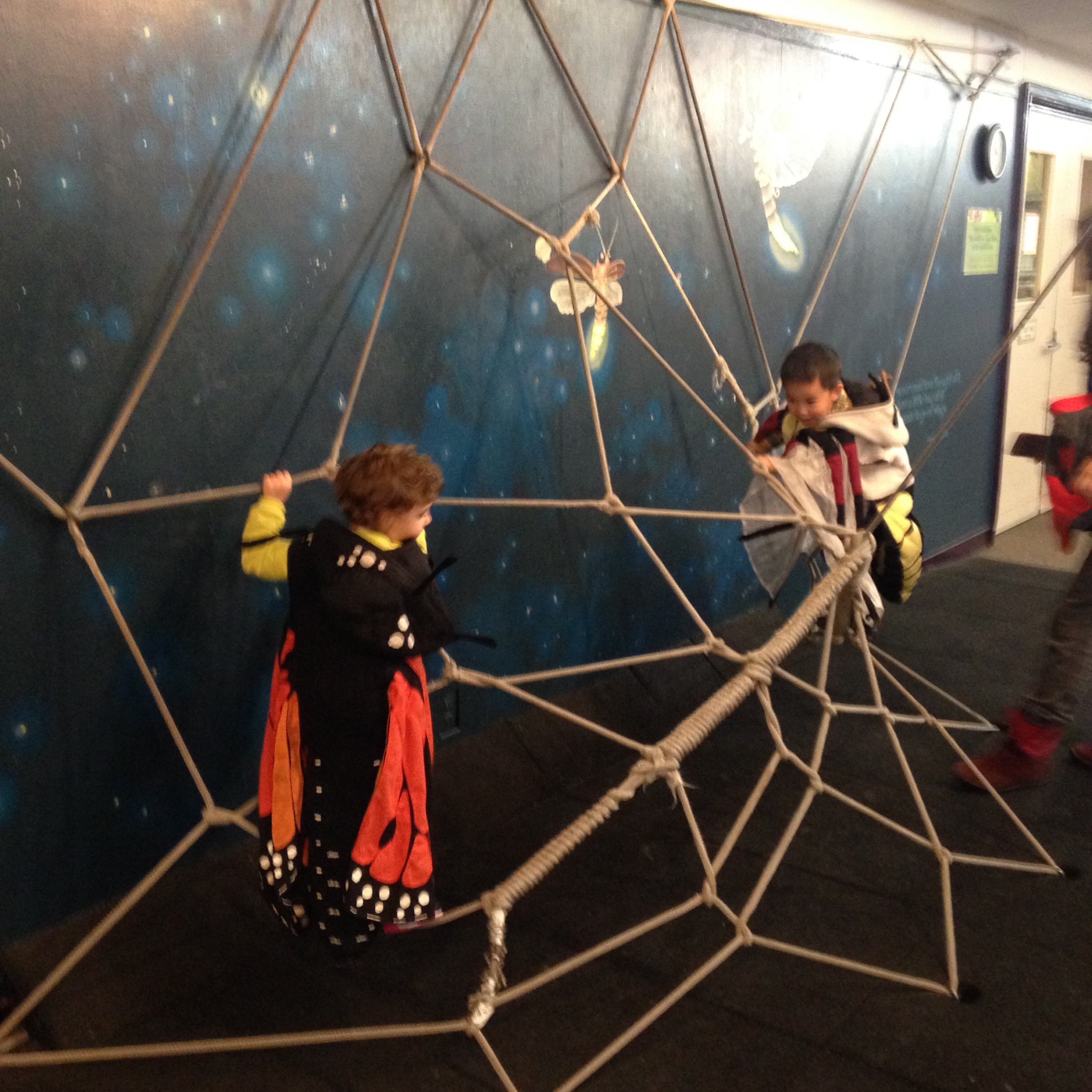 Poi c’è tutta una sezione dedicata al mondo degli insetti: stanza delle farfalle; postazione per classificare coleotteri, lepidotteri; spazio per disegnare cavallette, scarabei, mosche etc; area gioco per piccoli sotto i 18 mesi; caverna; alveare; lenti di ingrandimento …. ah, e una parete per l’arrampicata, con tanto di ragnatela, da provare possibilmente travestiti da insetti….
