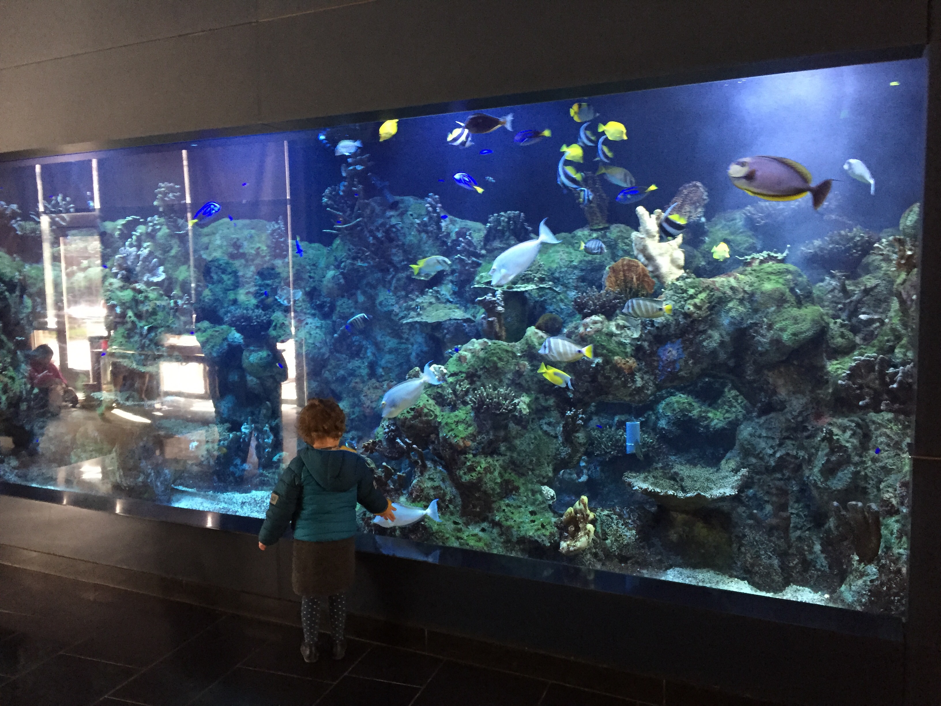 Per il nostro tour mensile delle biblioteche abbiamo deciso di visitare la Biblioteca di Cupertino che ospita nientemeno che un grande acquario a parete.