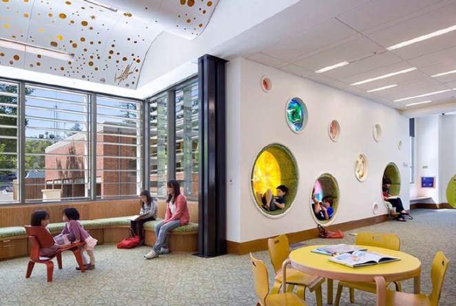 Poi ognuna ha la sua peculiarità, che rispecchia anche la composizione sociale della città in cui è. Così a Saratoga la biblioteca sembra una chiesa che sorge nel deserto, a Cupertino c’è tutta una sezione di letteratura cinese, a Los Gatos ci sono degli interni con nicchie circolari colorate dove accoccolarsi e leggere qualche romanzo d’avventura, a Los Altos grandi sale con divani e cuscini dove passare la giornata spulciando libri di ogni sorta e fuori spazi per letture all’aria aperta.