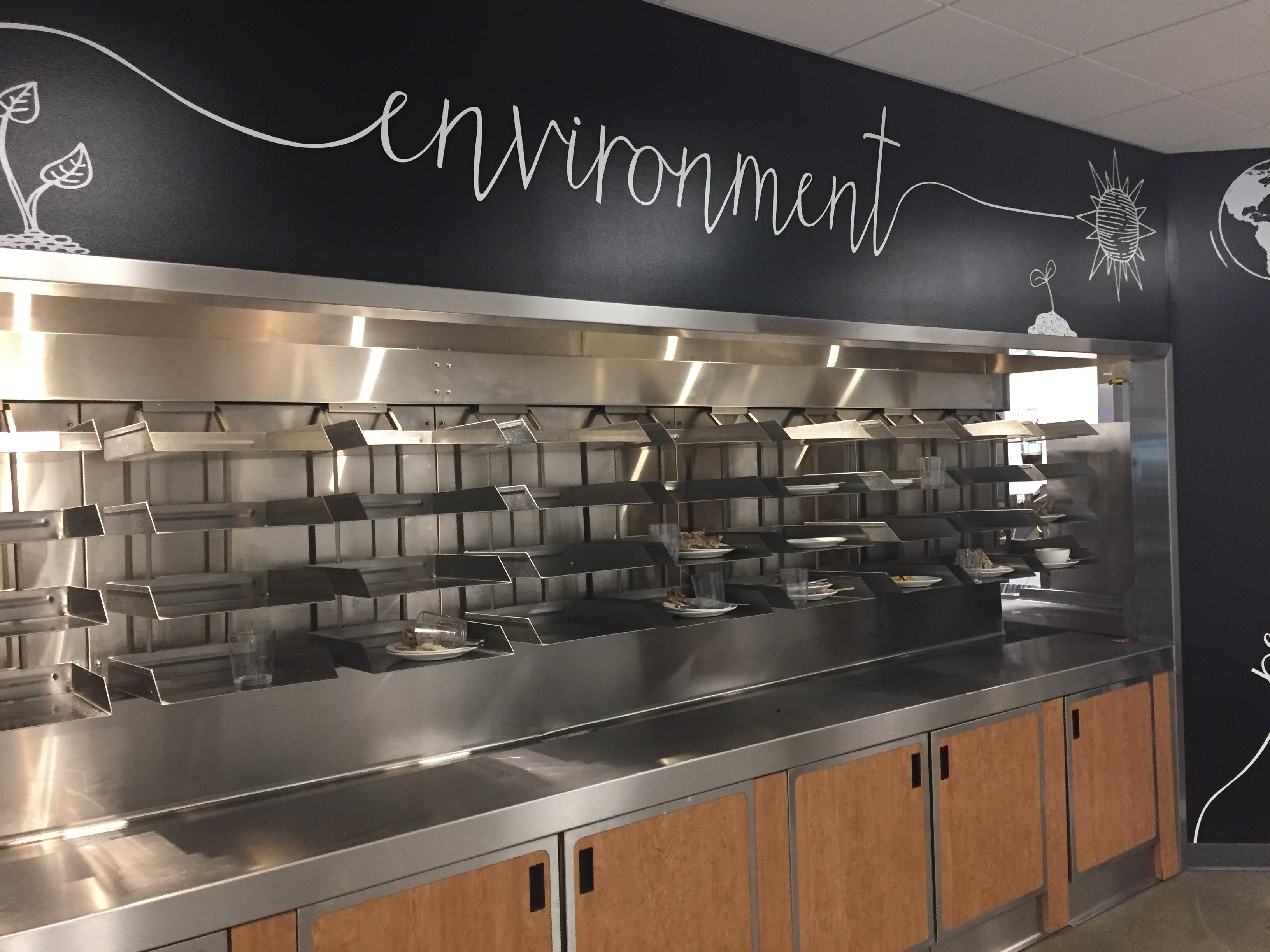 Forse chiamarle mense non rende bene l’idea, è più un self service, una tavola calda molto bella e nuova, ed elegante e giovane allo stesso tempo. Ogni ristorante è a tema, così c’è quello di cucina asiatica, quello di cucina giapponese e quello di cucina più mediterraneo.