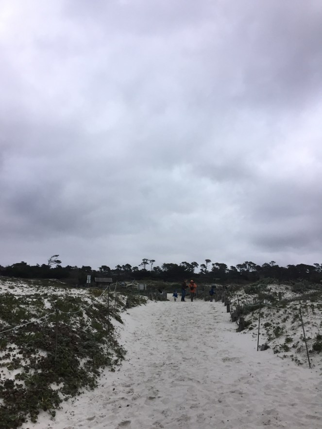 Poi, ecco che davanti a noi si è aperto il paesaggio delle dune di sabbia, punteggiate dalla vegetazione costiera: verbene e altre specie autoctone con le loro foglioline perfette dai nomi a me sconosciuti- Yellow sand and Pink verbena, Tidestrom’s lupine, Tidestrom’s lupine-, piccoli arbusti fermamente attacati al suolo, tronchi piegati dal vento.