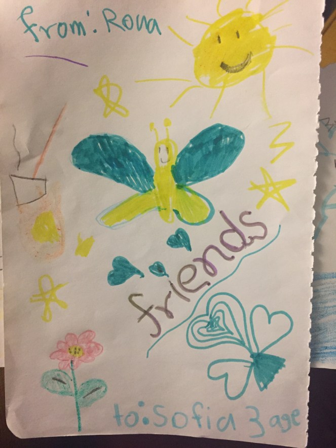 Carmen Sofia e Rona hanno fatto bellissimi disegni che poi si sono scambiate.
