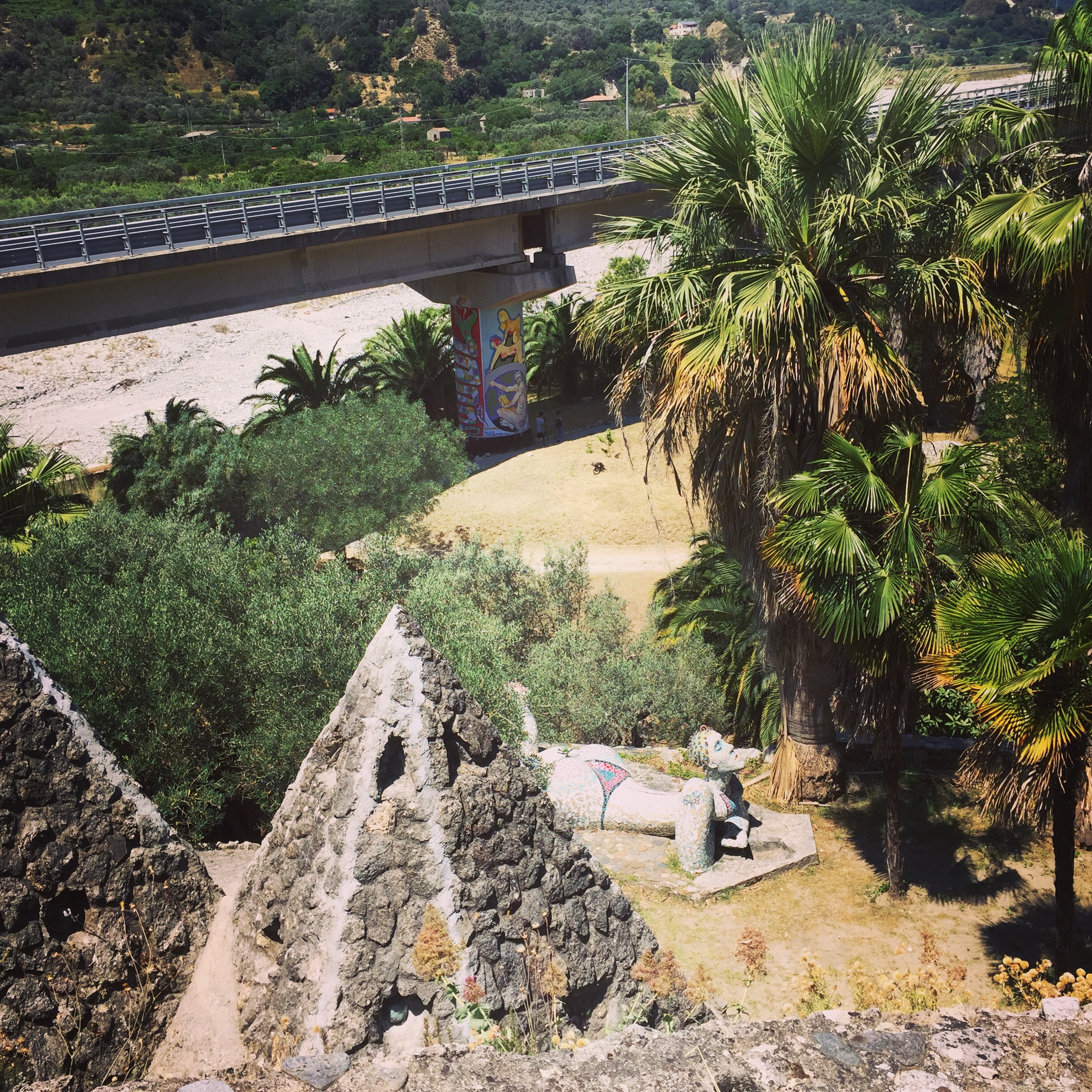Siamo alle porte dell’Aspromonte, il paesaggio è quello dei monti alti e aspri fasciati dalla vegetazione dei toni del verde, e poi, giù a valle troviamo stesi i grigi e i beige della fiumara secca. Come se non bastasse da una cinquantina di anni corre su piloni di cemento armato un bel viadotto- superstrada.