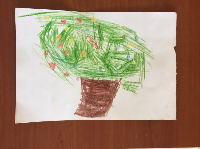 Che stupore, dopo tre anni e mezzo, vedere che il suo primo disegno ‘compiuto’ è proprio un albero!