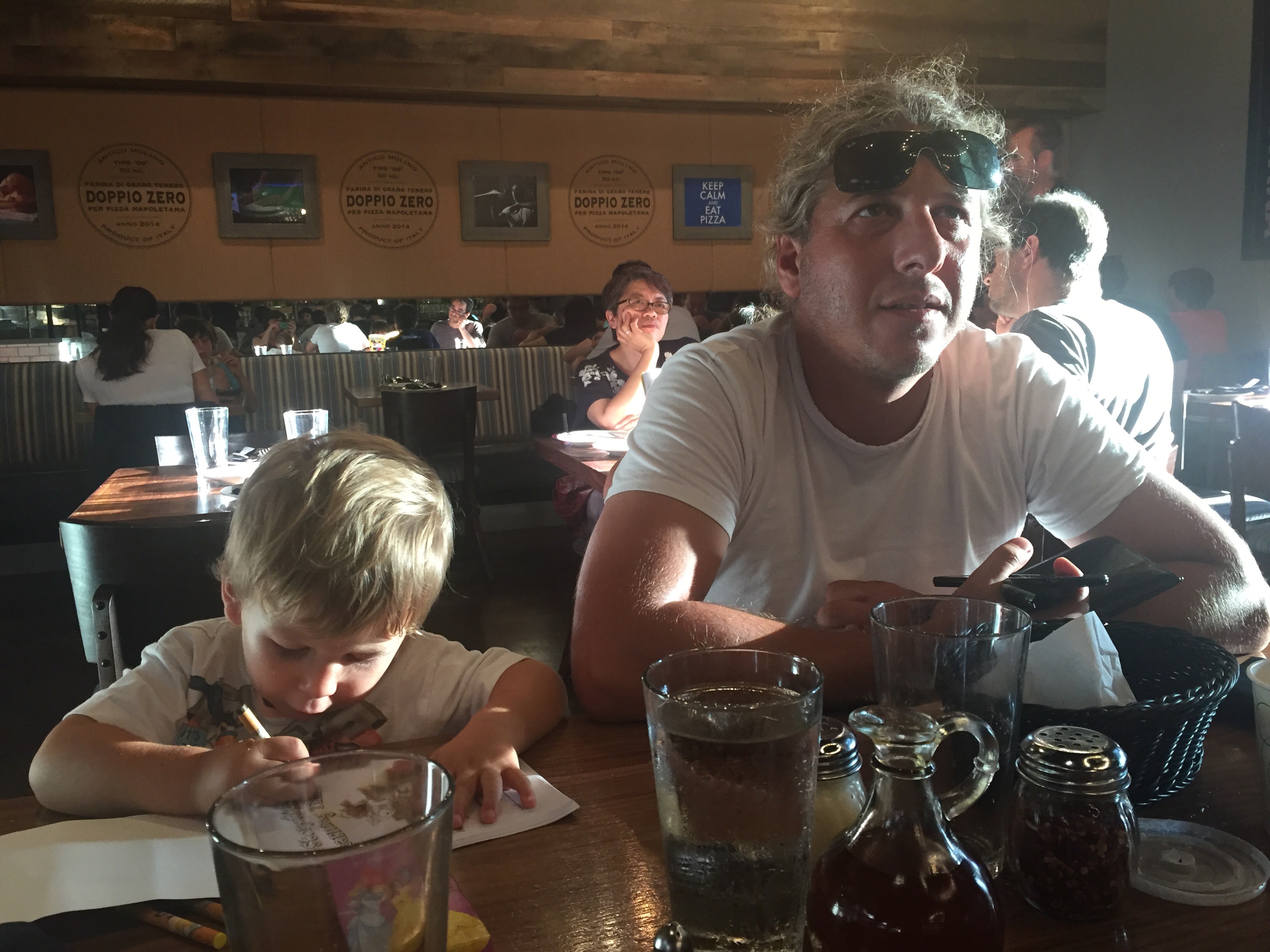 Per fortuna ci ha fatto la nostra pizza preferita, la Paesana (melanzana fritta e burrata), recentemente tolta dal menù perché… sapete com’è… per gli americani è troppo … light…