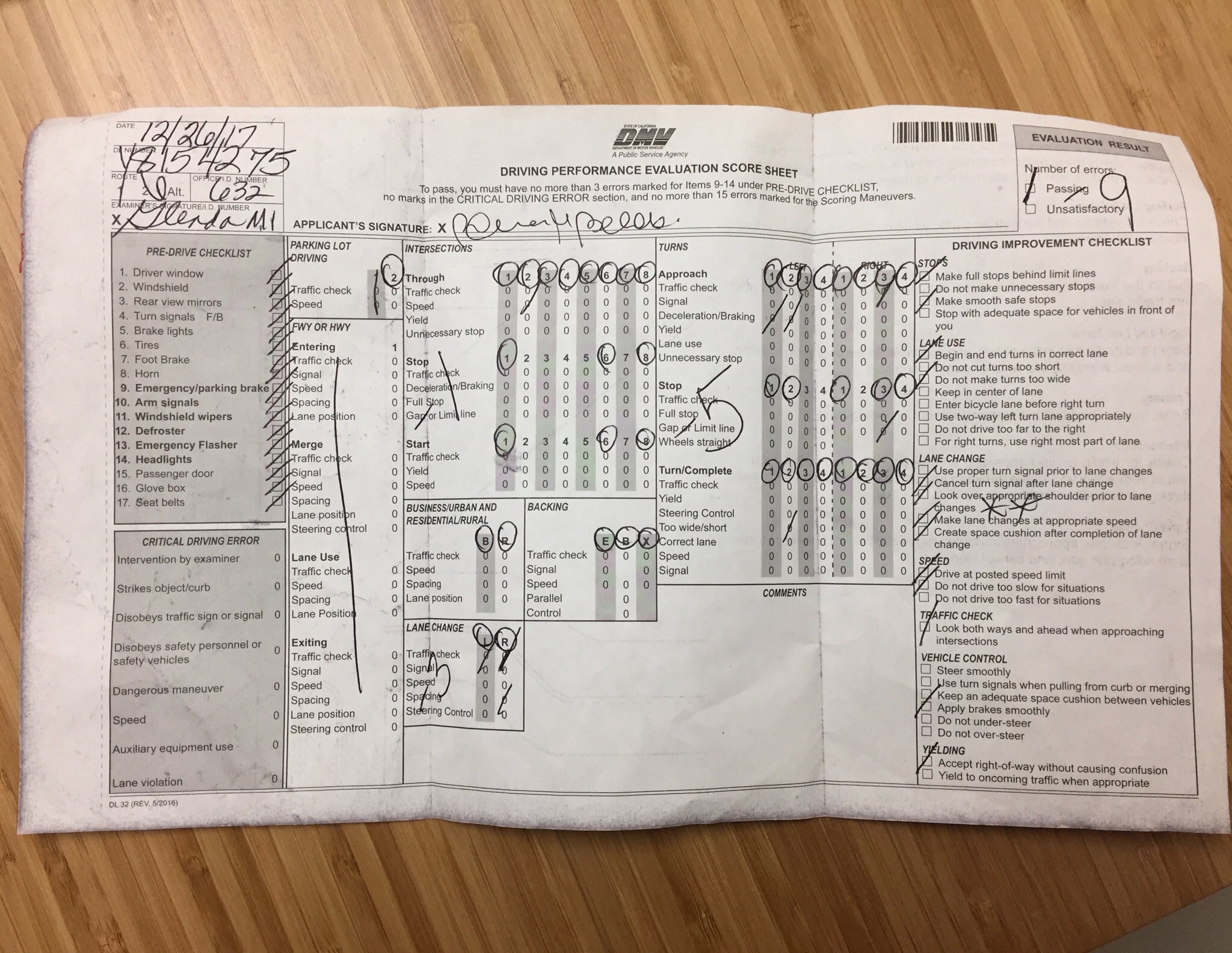 Allora, iniziamo col dire che sono riuscita a prendere la patente. A Maggio avevo fatto il test scritto e dopo Natale ho superato il Behind-the-Wheel Drive Test.